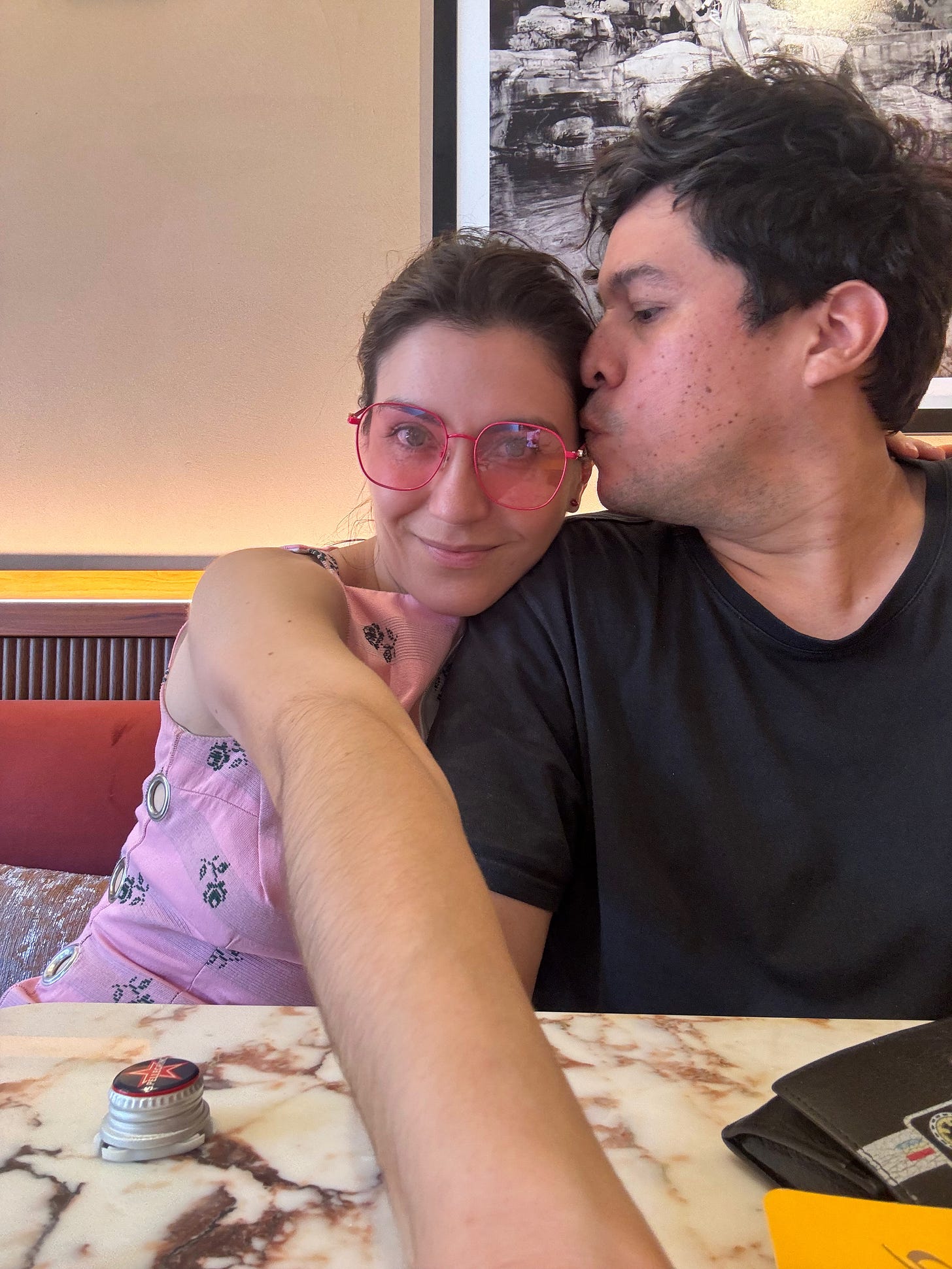 Siguiendo esta línea espontánea, regreso a esta foto de cuando encontramos asilo en un restaurante romano escapando del calor de la ciudad. Asilo además de tanta maravilla junta.